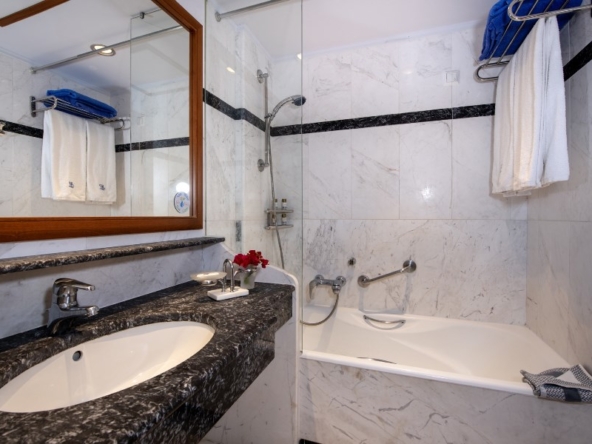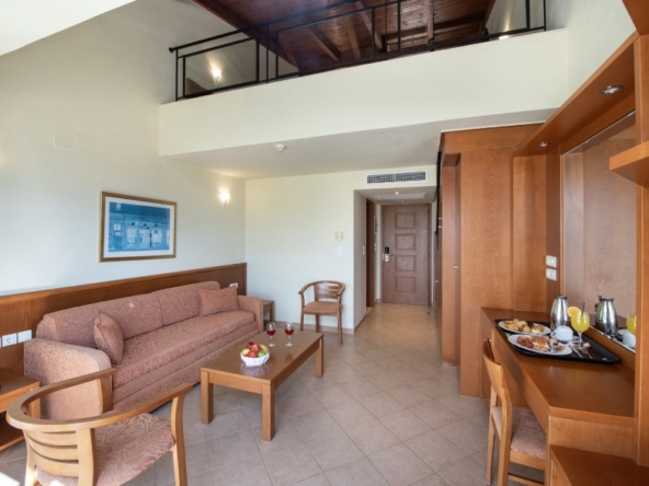 Ξενοδοχείο 4 αστέρων seafront, μπορεί να αναβαθμιστεί σε ξενοδοχείο 5 αστέρων. Εμβαδόν οικοπέδου 18.270 τ.μ. Περιλαμβάνει 213 δωμάτια και 20 δωμάτια προσωπικού, 550 κλίνες, 10.000 τμ χώροι κοινής χρήσης. 5.000 τμ χώροι βοηθητικοί, κολυμβητική δεξαμενή 340 τμ περίπου, κτισμένο το 2003, ημιτελές spa και αίθουσα conference