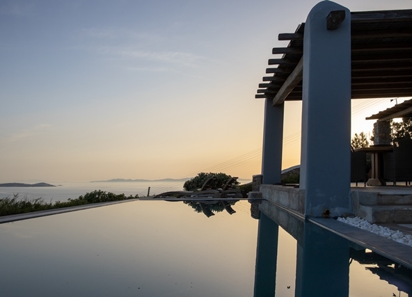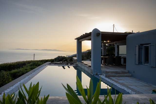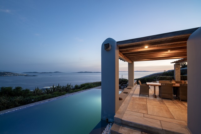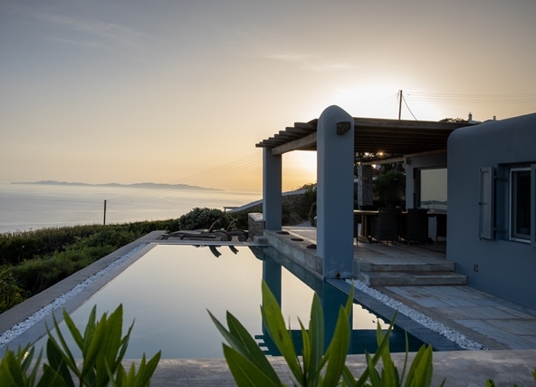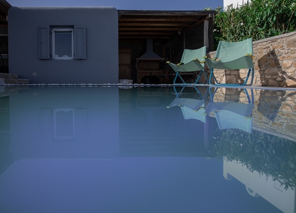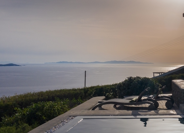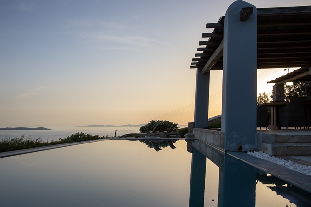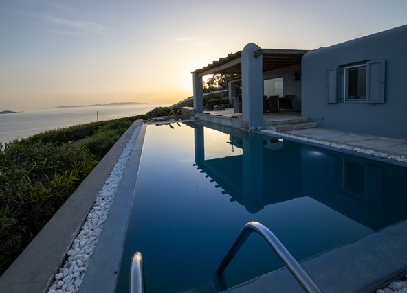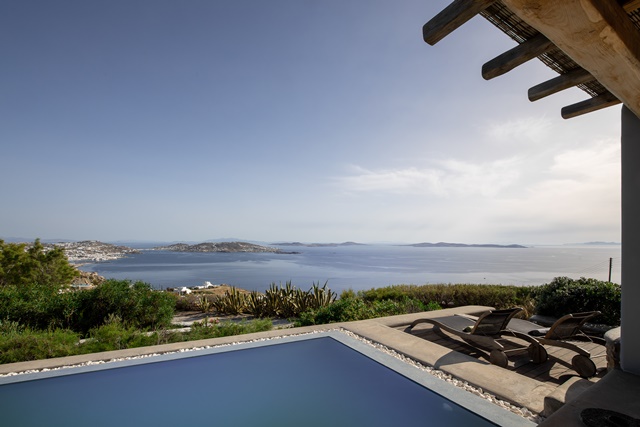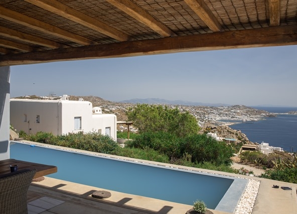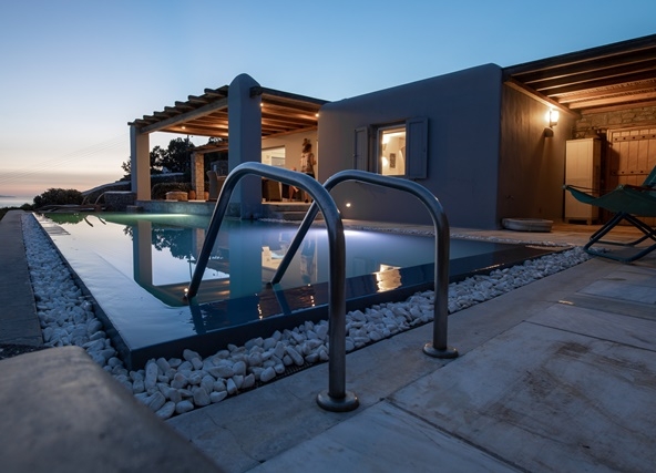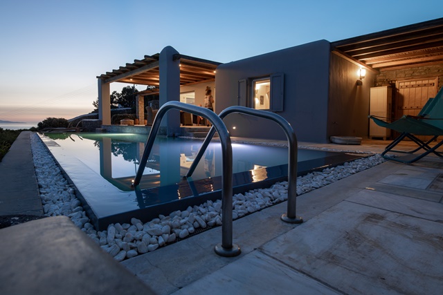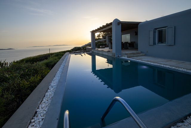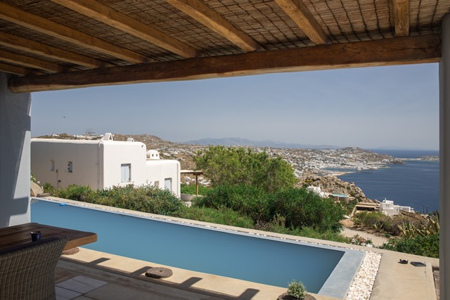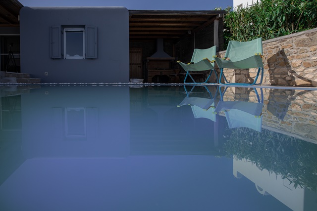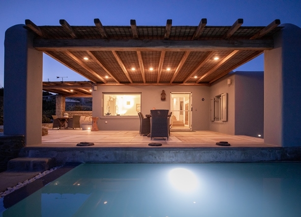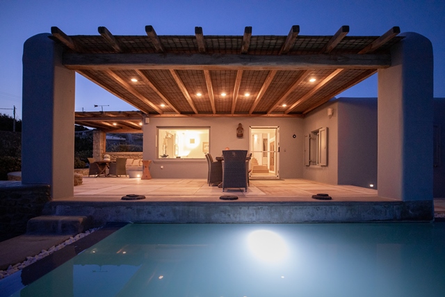 Ο προσανατολισμός της προστατεύει τις βεράντες και την πισίνα από τον βορειά.
