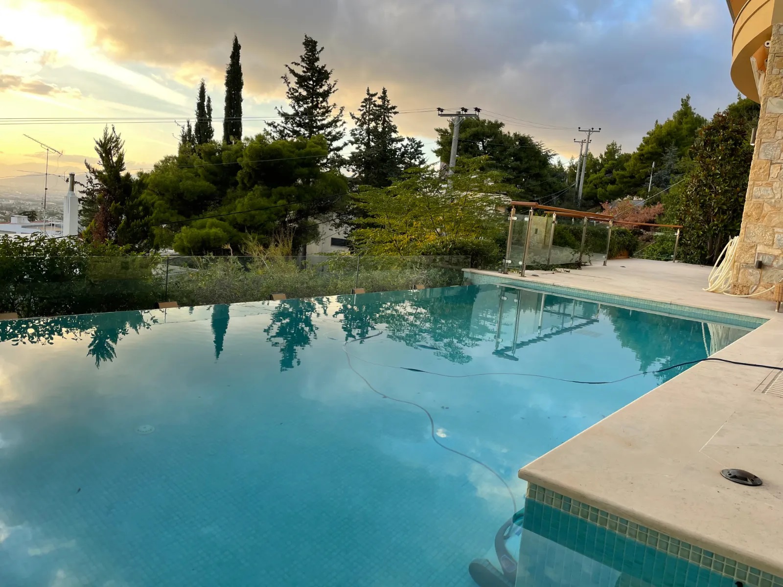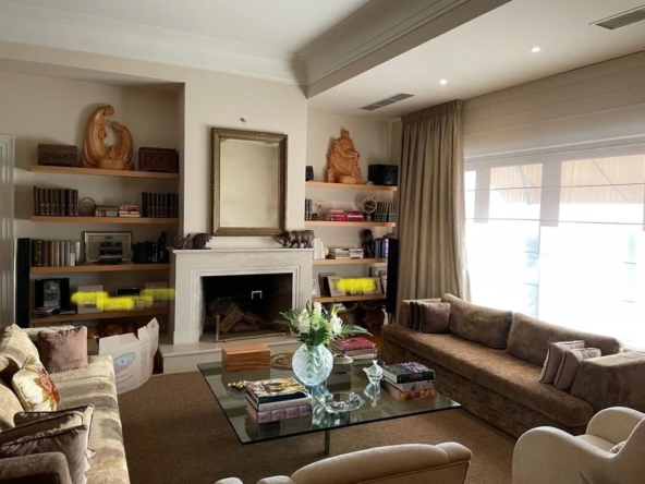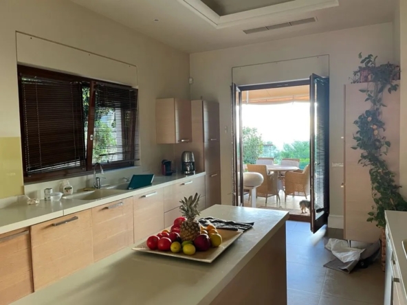 Ισόγειο: Ευρύχωρος και φωτεινός χώρος υποδοχής με τζάκι, χώρος γραφείου, τραπεζαρία με βοηθητικό κουζινάκι buttllers pantry με άμεση πρόσβαση στην πισίνα, κουζίνα ξεχωριστή πλήρως εξοπλισμένη με εντοιχισμένες συσκευές (2 πλυντήρια πιάτων, 2 φούρνοι), αποθήκη τροφίμων, άμεση πρόσβαση στην πισίνα, το BBQ και την εξωτερική τραπεζαρία.
