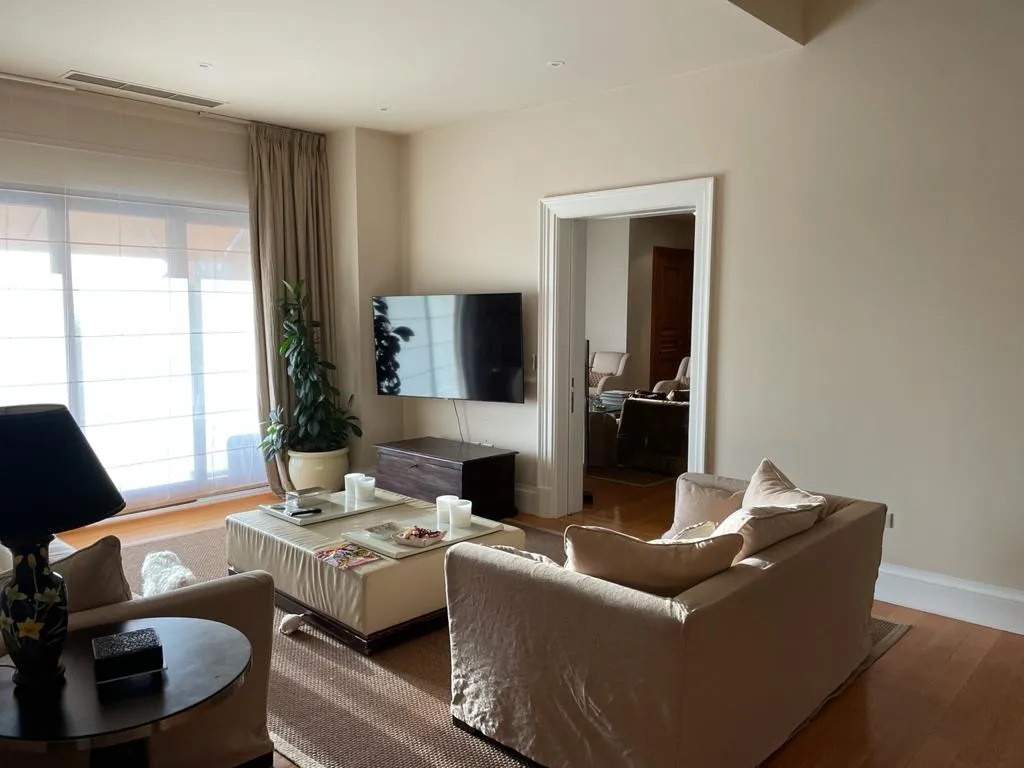 δρύινα πατώματα, κουφώματα αλουμινίου, αποθηκευτικό χώρο, ιδιωτικό γήπεδο squash, υπόγειο parking (συνδέεται με ασανσέρ με τη μεζονέτα), ανεξάρτητη είσοδο επισκεπτών. Τιμή πώλησης 3.900.000.