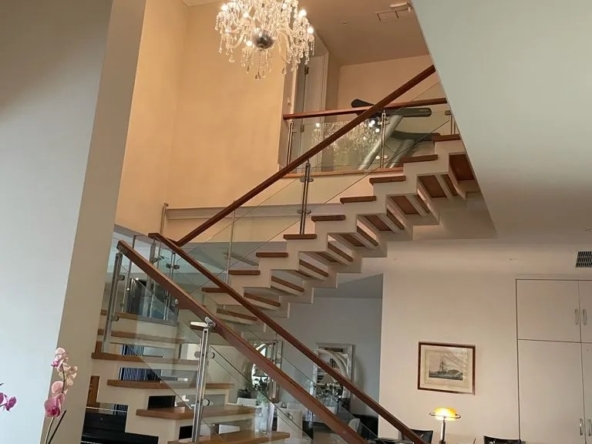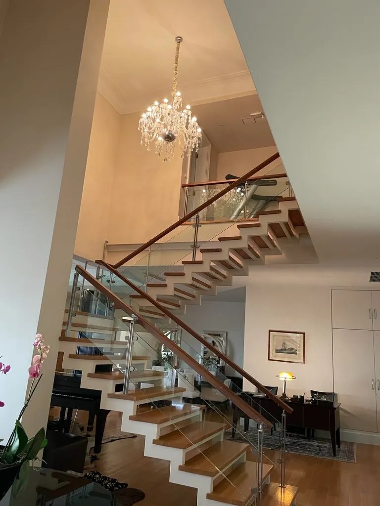 1ος όροφος: Εσωτερικό μπαλκόνι (open to below) που ενώνει με εξαιρετική αισθητική τα δύο επίπεδα, 1 master en suite υπνοδωμάτιο με walk-in closet, 2 υπνοδωμάτια και ένα μπάνιο.